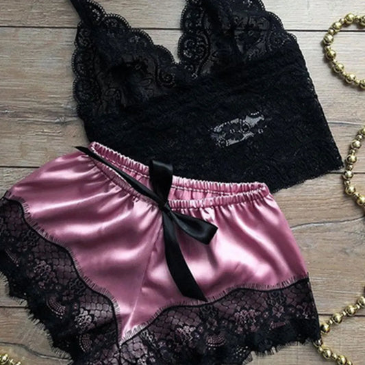 1 Pajamas Set Womens Lace Sleepwear Lingerie Crop Tops and Shorts Babydoll Pajamas Underwear Nightwear 3XL 4XL 5XL