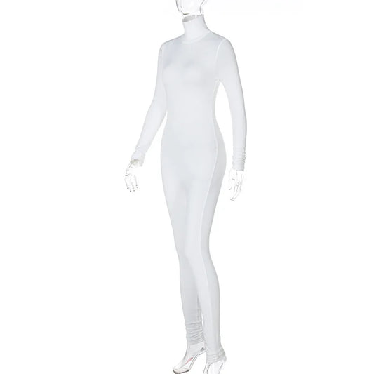 Winter Warm Women's Jumpsuit Autumn New Fashion High Collar Long Sleeve High Waist Pants Women Office Elegant Slim Jumpsuit