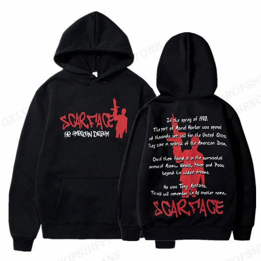 Scarface Hoodies Men Fashion Hoodie Japanese Y2k Fleece Sweatshirt Movie Scarface Tony Montana Hoodies Sweatshirts Mens Clothing