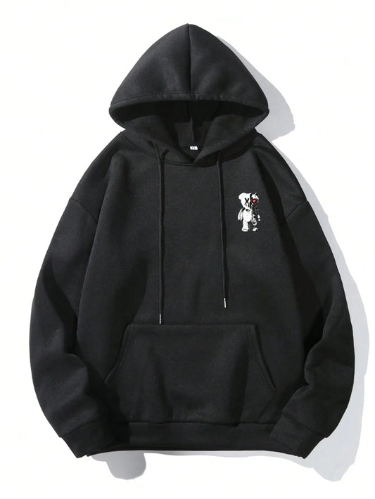 Cartoon Machine Bear Print Pullovers Men Cartoons Creative Hoodie Oversize Fashion Clothing All-Match Autumn Winter Male Hoody