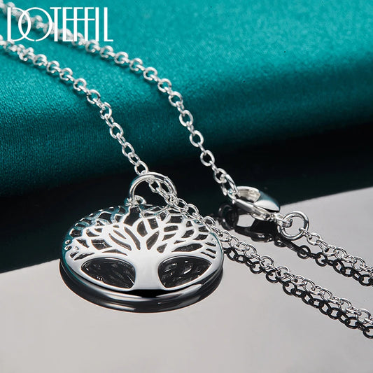 DOTEFFIL 925 Sterling Silver 16-30 Inch Chain Tree Round Pendant Necklace For Woman Fashion Wedding Engagement Charm Jewelry