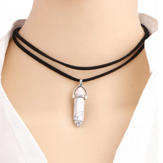 Necklace Hot Sale Natural Stone Hexagon Pillar Crystal Pendant Necklace Multicolor Clavicle Chain Sweater Chain Jewelry 2023 New