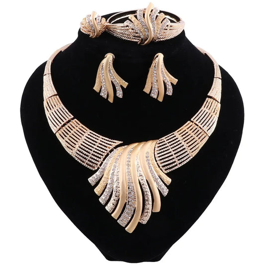 Trendy Nigerian Beads Necklace Jewelry Set for Wedding Crystal African Beads Jewelry Set for Women Earrings Jewellery