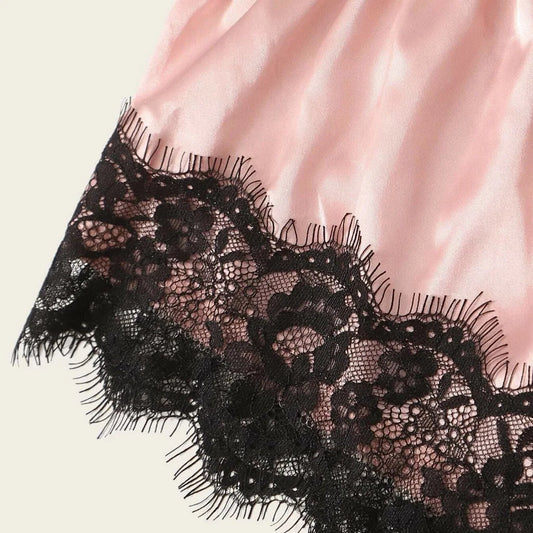 3-piece Set of Sexy Pajamas for Women Eyelashes Lace Satin Sleepwear Cami Tops Shorts Panties Lingerie Pyjamas Nightwear Mujer