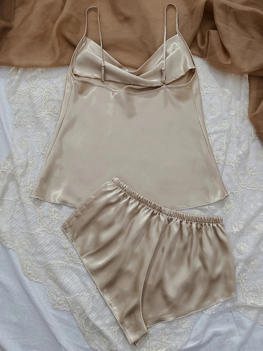 Elegant Pajama Satin Floral Plunge Neck Cami Tops Elastic Waistband Shorts For Valentine's Gifts Womens Loungewear Sleepwe